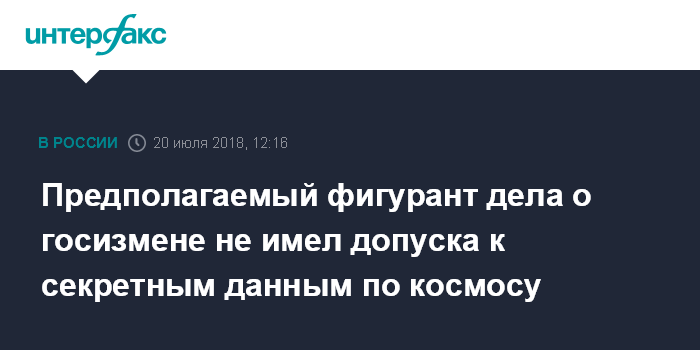Предполагаемый фигурант дела о госизмене не имел допуска к секретным данным по космосу