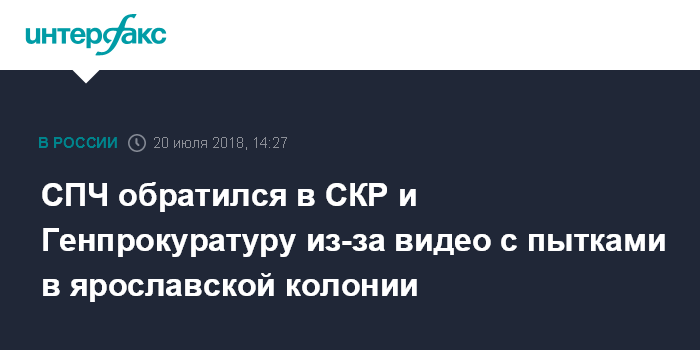 Москва. 20 июля. INTERFAX.RU - Совет по правам человека при президенте РФ обратился в Следственный комитет и Генпрокуратуру России в связи с информацией о пытках в ярославской колонии, сообщает пресс-служба СПЧ.