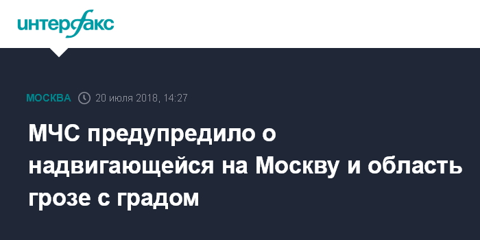 Москва. 20 июля. INTERFAX.RU - Гроза, сильный дождь и град ожидаются в Москве с вечера пятницы до ночи субботы, сообщили "Интерфаксу" в пресс-службе столичного главка МЧС.