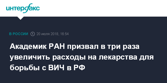 Академик РАН призвал в три раза увеличить расходы на лекарства для борьбы с ВИЧ в РФ