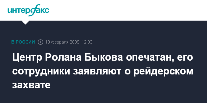 Как сообщил "Интерфаксу" один из работников Центра Ролана Быкова, утром пришедших в офис у дверей здания встретили охранники ранее неизвестного им ЧОПа, которые отказались пускать их в помещение. "Это настоящий рейдерский захват", - заявил собеседник агентства.