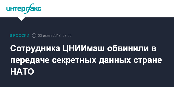 Сотрудника ЦНИИмаш обвинили в передаче секретных данных стране НАТО