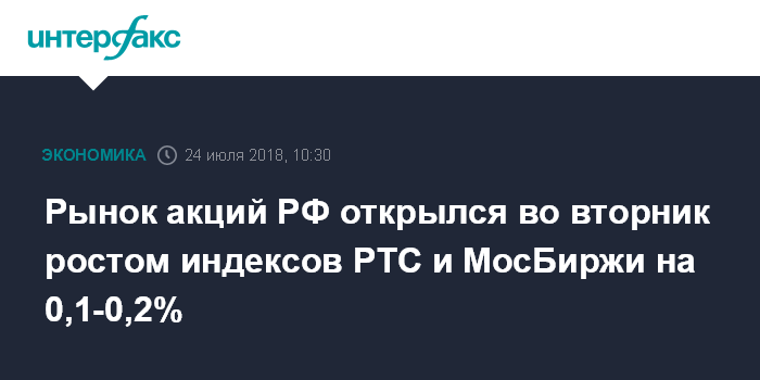Рынок акций РФ открылся во вторник ростом индексов РТС и МосБиржи на 0,1-0,2%