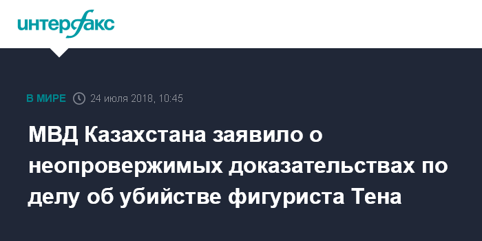 Москва. 24 июля. INTERFAX.RU - Замглавы МВД Казахстана Рашид Жакупов во вторник отверг заявления о том, что при расследовании убийства фигуриста Дениса Тена могли быть задержаны лица, непричастные к совершению преступления.