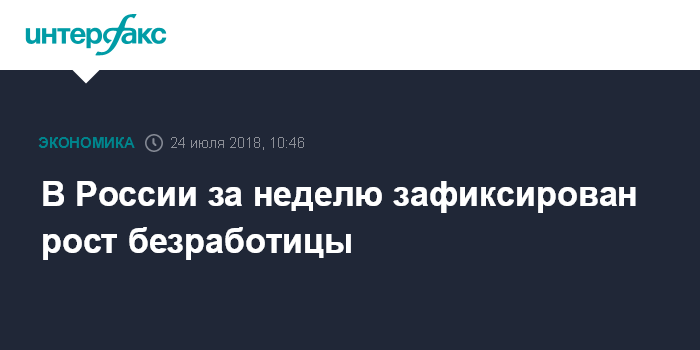 Москва. 24 июля. INTERFAX.RU - Численность официально зарегистрированных безработных в России за неделю с 11 по 18 июля увеличилась на 0,4% и составила 696,7 тысячи человек, сообщили в пресс-службе Минтруда.