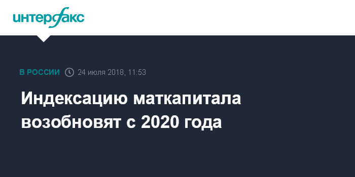 Москва. 24 июля. INTERFAX.RU - Кабинет министров намерен возобновить индексацию материнского капитала с 2020 года, заявила вице-премьер Татьяна Голикова.