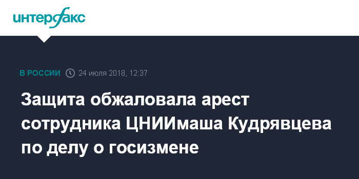 Защита обжаловала арест сотрудника ЦНИИмаша Кудрявцева по делу о госизмене