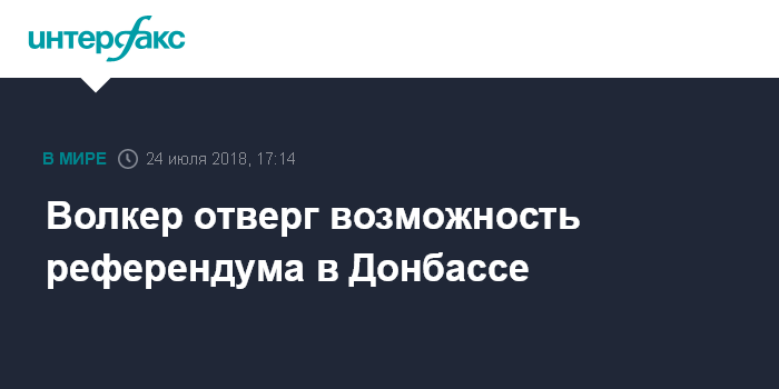 Москва. 24 июля. INTERFAX.RU - Референдум в Донбассе невозможен, что уже подтвердила администрация Белого дома, заявил специальный представитель Госдепартамента США по вопросам Украины Курт Волкер.