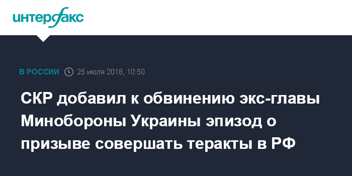 СКР добавил к обвинению экс-главы Минобороны Украины эпизод о призыве совершать теракты в РФ