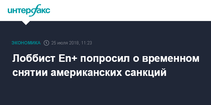 Москва. 25 июля. INTERFAX.RU - Завершение реализации "плана Баркера" по выводу En+ Group из-под действия американских санкций потребует временного исключения холдинга Олега Дерипаски из списка OFAC, пишет лоббистская компания, представляющая интересы En+ в США.