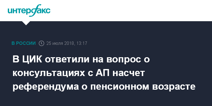 В ЦИК ответили на вопрос о консультациях с АП насчет референдума о пенсионном возрасте