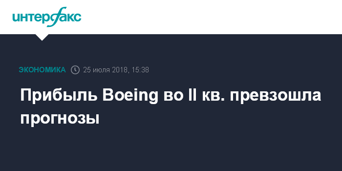Москва. 25 июля. INTERFAX.RU - Американский концерн Boeing, один из крупнейших мировых производителей авиационной, космической и военной техники, во втором квартале 2018 года увеличил прибыль и выручку сильнее прогнозов рынка. Вместе с тем выручка подразделения гражданских самолетов Boeing Commercial Airplanes оказалась ниже ожиданий.