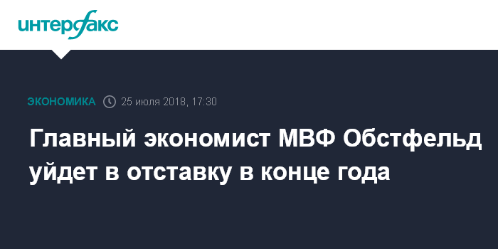 Москва. 25 июля. INTERFAX.RU - Главный экономист Международного валютного фонда (МВФ) Морис Обстфельд уйдет в отставку в конце декабря 2018 года, объявила в среду директор-распорядитель МВФ Кристин Лагард.