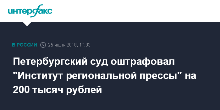 Петербургский суд оштрафовал "Институт региональной прессы" на 200 тысяч рублей