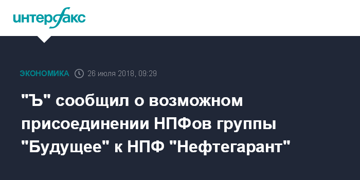 "Ъ" сообщил о возможном присоединении НПФов группы "Будущее" к НПФ "Нефтегарант"
