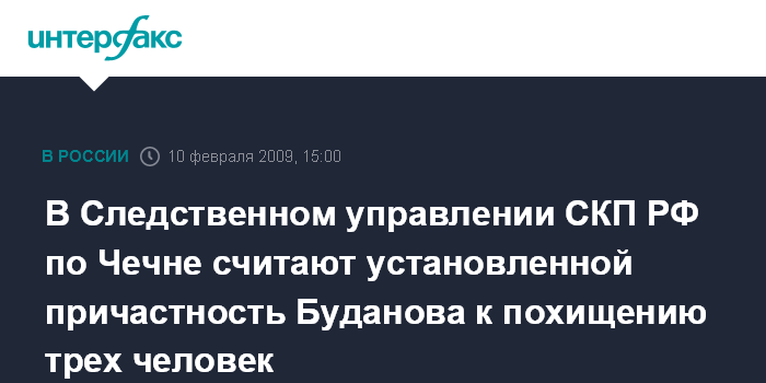 В Следственном управлении СКП РФ по Чечне считают установленной причастность Буданова к похищению трех человек