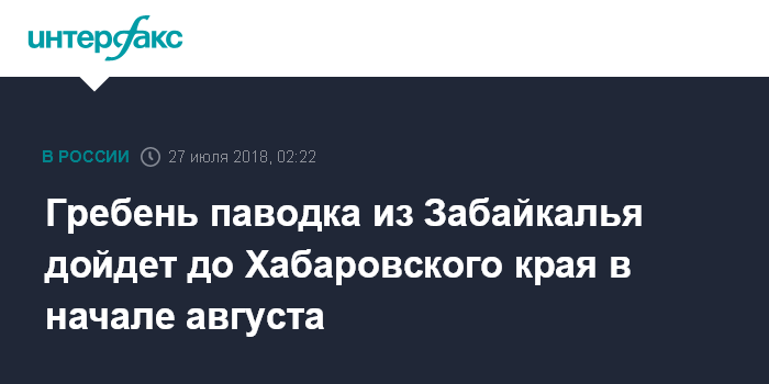 Гребень паводка из Забайкалья дойдет до Хабаровского края в начале августа