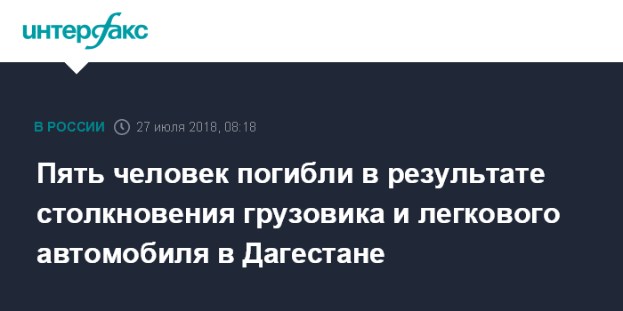 Пять человек погибли в результате столкновения грузовика и легкового автомобиля в Дагестане