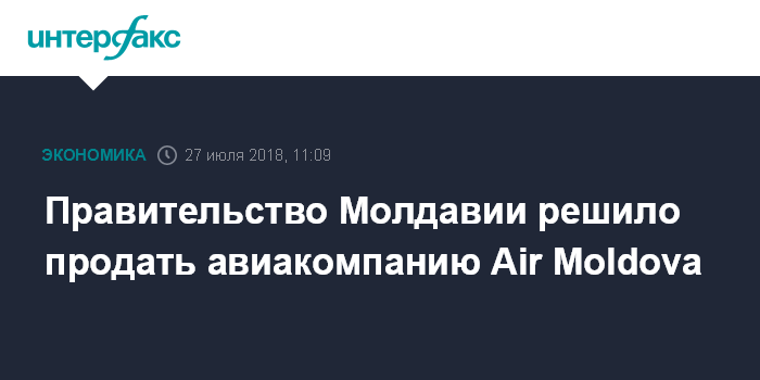 Москва. 27 июля. INTERFAX.RU - Единственная в Молдавии государственная авиакомпания Air Moldova выставлена на продажу, говорится в сообщении, опубликованном в пятницу на сайте Агентства публичной собственности (АПС).