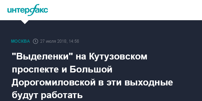 "Выделенки" на Кутузовском проспекте и Большой Дорогомиловской в эти выходные будут работать
