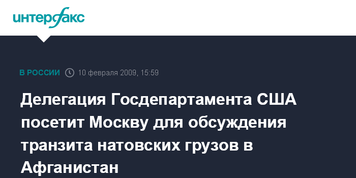 "Последние несколько месяцев мы обсуждали с Россией, как можно углубить наше сотрудничество в Афганистане в таких областях, как выполнение соглашения о транзите между РФ и НАТО, взаимодействие по предоставлению Афганистану военной и другой помощи, борьба с терроризмом и контрабандой наркотиков. 10-11 февраля Москву посетит делегация во главе с заместителем помощника госсекретаря П.Муном, чтобы обсудить эти вопросы более детально", - сообщили "Интерфаксу" в посольстве США в Москве.