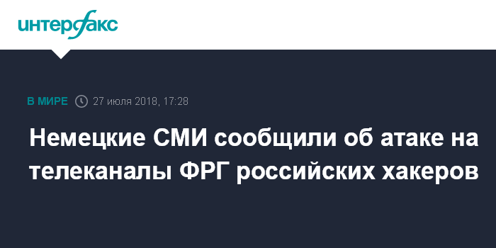 Немецкие СМИ сообщили об атаке на телеканалы ФРГ российских хакеров