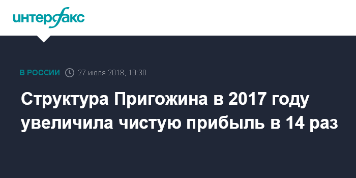 Структура Пригожина в 2017 году увеличила чистую прибыль в 14 раз