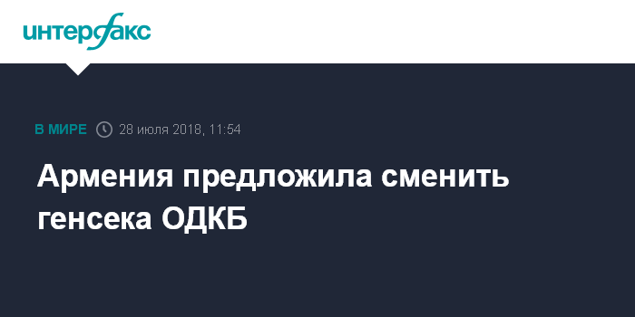 Москва. 28 июля. INTERFAX.RU - Армения предложила государствам - членам ОДКБ начать процесс замены генсека организации, заявил "Интерфаксу" пресс-секретарь МИД Армении Тигран Балаян.