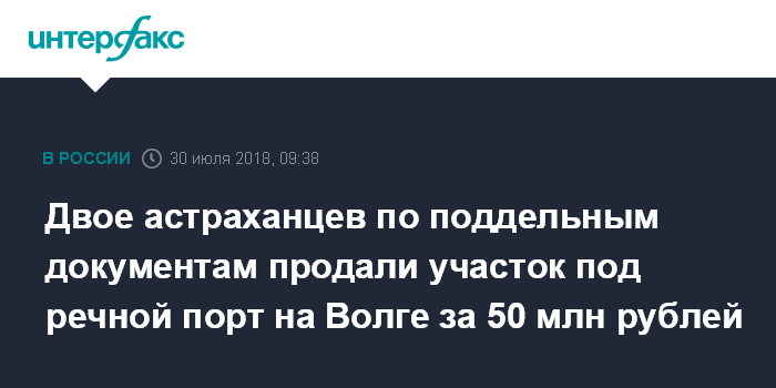Двое астраханцев по поддельным документам продали участок под речной порт на Волге за 50 млн рублей