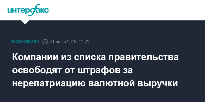 Компании из списка правительства освободят от штрафов за нерепатриацию валютной выручки