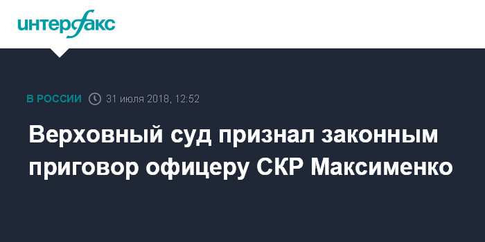 Верховный суд признал законным приговор офицеру СКР Максименко