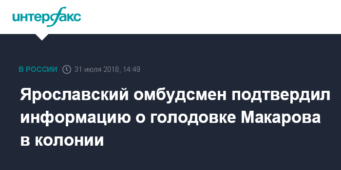 Ярославский омбудсмен подтвердил информацию о голодовке Макарова в колонии