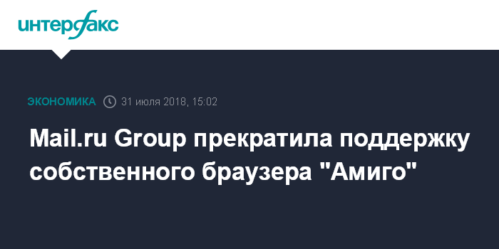 Москва. 31 июля. INTERFAX.RU - Интернет-холдинг Mail.ru Group объявил, что прекращает разработку и продвижение собственного браузера "Амиго".