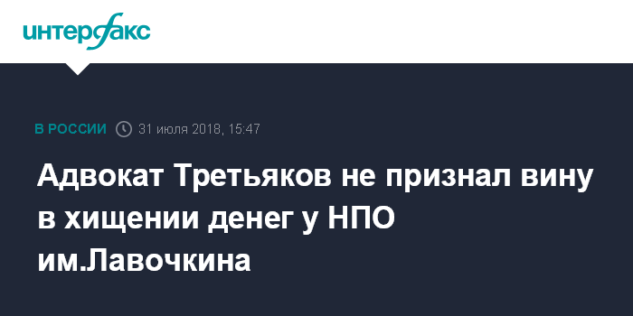 Адвокат Третьяков не признал вину в хищении денег у НПО им.Лавочкина