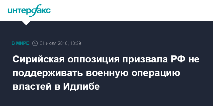 "Как многие знают, приобрела актуальность угроза наступательной операции сирийской армии на Идлиб. Хотел бы в какой-то мере предостеречь, потому что если эта война произойдет , то это принесет затруднения в политическое урегулирование сирийского кризиса. Обращаемся с призывом Российской Федерации никак не поддерживать и не помогать сирийской национальной армии в такой возможной наступательной операции",- сказал он на брифинге во вторник.