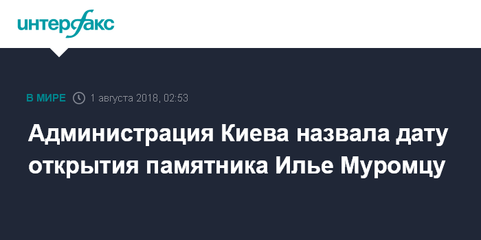 Москва. 1 августа. INTERFAX.RU - В столице Украины в четверг состоится открытие памятника богатырю времен Киевской Руси Илье Муромцу, который устанавливают в одноименном парке, сообщила в среду Киевская горгосадминистрация (КГГА).