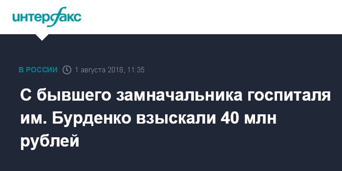 С бывшего замначальника госпиталя им. Бурденко взыскали 40 млн рублей