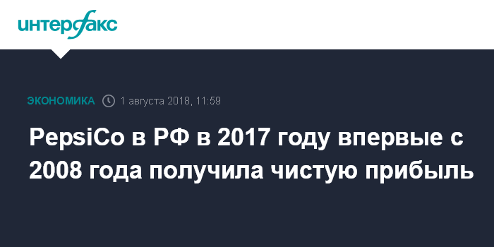 PepsiCo в РФ в 2017 году впервые с 2008 года получила чистую прибыль