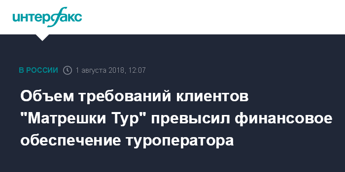 Объем требований клиентов "Матрешки Тур" превысил финансовое обеспечение туроператора