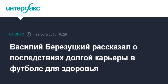 Москва. 1 августа. INTERFAX.RU - Бывший защитник сборной России и московского ФК ЦСКА Василий Березуцкий, вместе с братом Алексеем недавно объявивший о завершении карьеры, рассказал о том, к каким проблемам со здоровьем привело продолжительное выступление в профессиональном футболе.