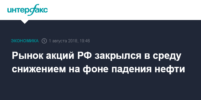 Москва. 1 августа. INTERFAX.RU - Российский рынок акций закрылся в среду снижением на фоне падения нефти и мировых фондовых рынков; при этом уменьшение индекса "МосБиржи" было более скромным, нежели индекса РТС за счет обесценения рубля.