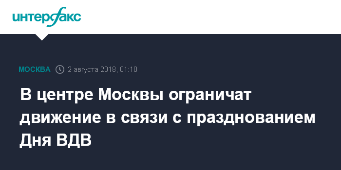 В центре Москвы ограничат движение в связи с празднованием Дня ВДВ