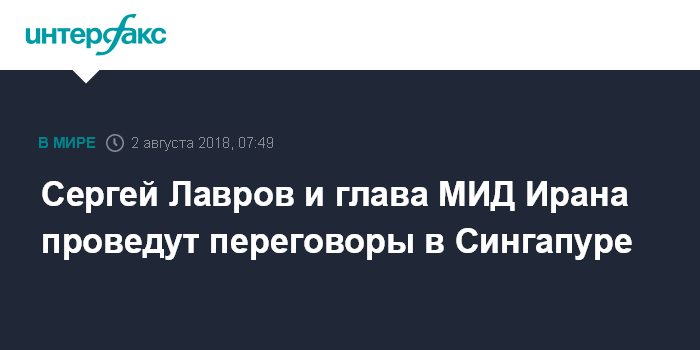 Сергей Лавров и глава МИД Ирана проведут переговоры в Сингапуре
