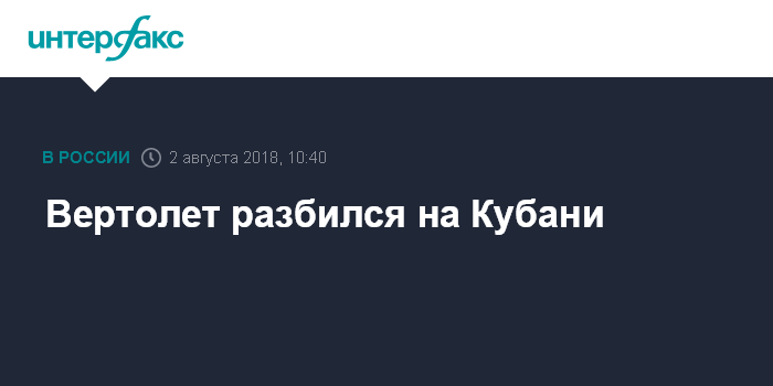 Москва. 2 августа. INTERFAX.RU - Вертолет разбился в Краснодарском крае, пилот, предположительно, погиб, сообщили агентству "Интерфакс" в оперативных службах региона.