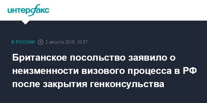"Несмотря на решение российского правительства о закрытии генконсульства Великобритании в Санкт-Петербурге, мы хотим официально подтвердить, что процесс подачи и оформления виз для граждан России на данный момент остается неизменным", - говорится в сообщении дипмиссии, размещенном в четверг в твиттере.