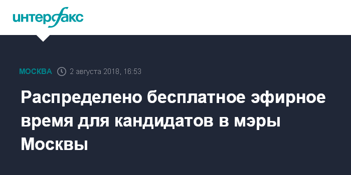 Москва. 2 августа. INTERFAX.RU - Мосгоризбирком утвердил графики бесплатного эфирного времени для кандидатов в мэры Москвы.