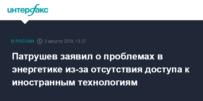 "Введенные США и их союзниками финансовые и технологические санкции в отношении российских энергетических компаний обозначили проблему уязвимости и зависимости отечественной энергетики от иностранного капитала и иностранных технологий, оборудования, программного обеспечения", - сказал Патрушев на совещании с главами регионов Центральной России в пятницу, посвященном вопросам противодействия преступности и обеспечения энергобезопасности.