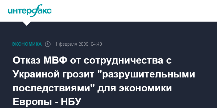Отказ МВФ от сотрудничества с Украиной грозит "разрушительными последствиями" для экономики Европы - НБУ