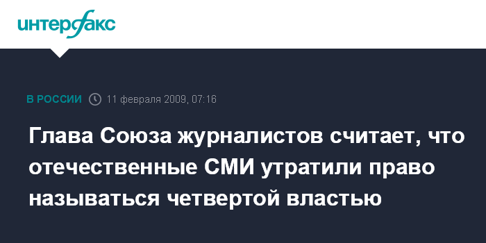 Глава Союза журналистов считает, что отечественные СМИ утратили право называться четвертой властью