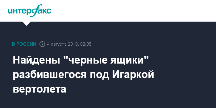 Москва. 4 августа. INTERFAX.RU - Найдены "черные ящики" разбившегося в Красноярском крае Ми-8, однако установить причины катастрофы они вряд ли помогут, сообщил "Интерфаксу" источник в оперативном штабе на месте ЧС.